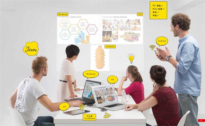 不過現(xiàn)在好了,有了它:會議室“黑科技”可立享ClickShare,問題都解決啦:
